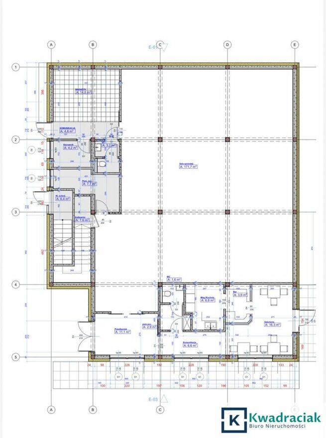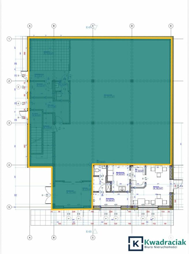• sala sprzedażowa 177 m² - przestrzeń otwarta, ustawna